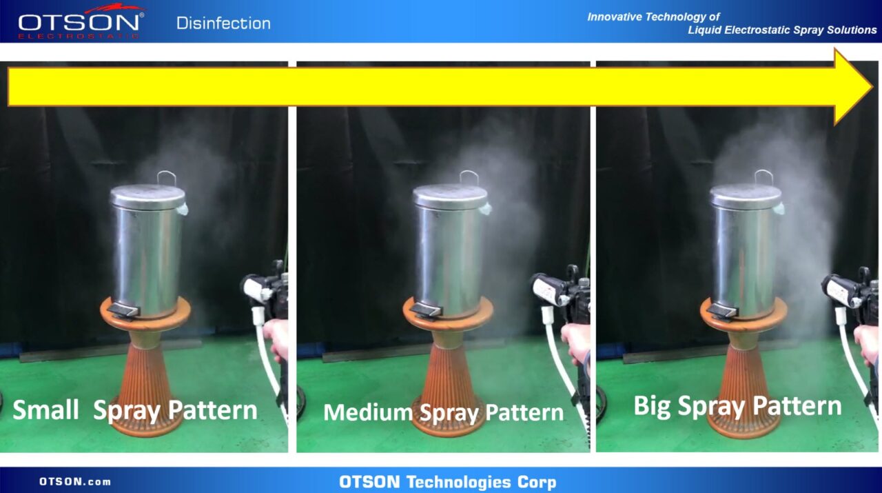 This “wraparound“ effect is so powerful that, with some objects, disinfectant spray can be observed to ‘wrap around’.In this way, the purpose of the electrostatic disinfectant is achieved which can offer transfer efficiency up to 95% and minimize the over spraying phenomenon obviously. OTSON is keeping research and developments in electrostatic equipment in last 38 years, the technologies of OTSON electrostatic can now also be used for waterborne / solvent disinfectants