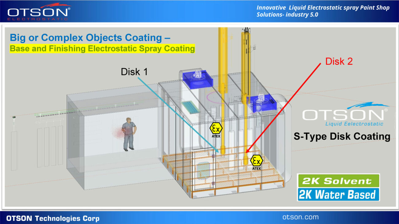 It’s important to note that both Single Disc and S-Type systems use electrostatic power to attract the liquid coating material to the surface being coated. The main difference is in the atomization process and the level of precision and control in the coating application, with S-Type systems being more precise and controlled.