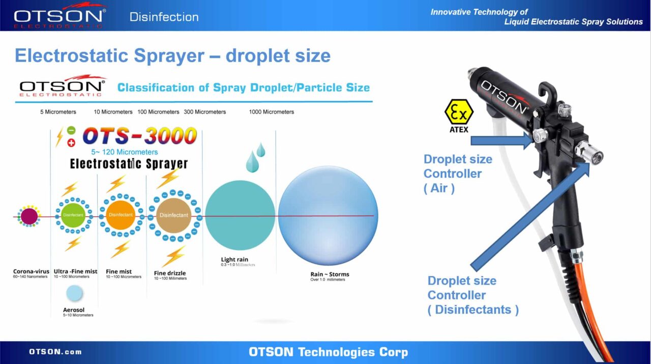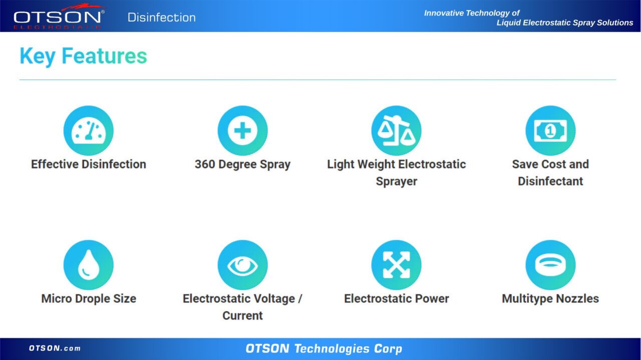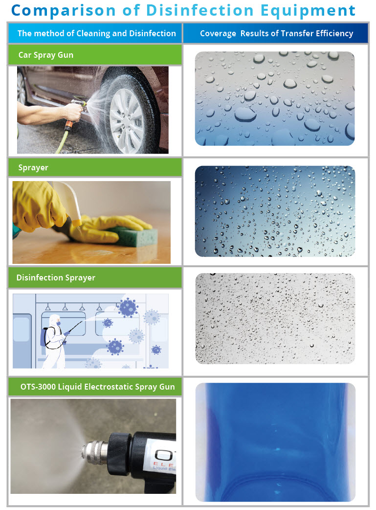 Although an electrostatic sprayer may cost more, it has many advantages over a conventional sprayer. An electrostatic sprayer has a very high transfer efficiency (60-80%) which results in a lower disinfectant cost, Manpower cost , virus cross-infection rate, and fast to disinfection large area.