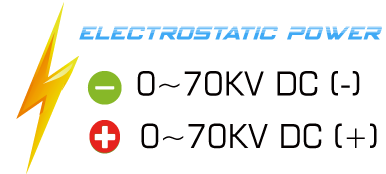 - Adjustable Electrostatic power output ( 0 ~ 70 KV -DC (+) (-) )